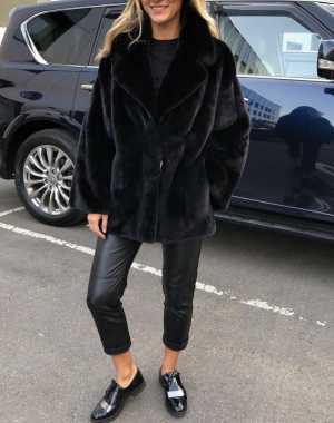 Норковый жакет с воздушными рукавами выполнен из американской аукционной норки BLACKGLAMA.