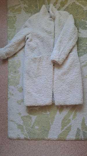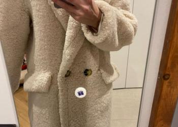 Цвет молочный,50%шерсти,50%полиэстера,застегивается на заклёпки,два кармана