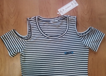 Новая маечка с вырезом на плечах. Мягкий трикотаж. Чёрно-белая полоска. 42 размер.