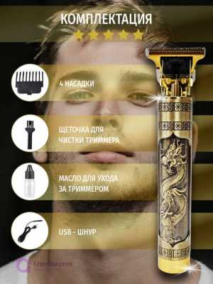 Триммер профессиональный Золотой дракон Usb зарядка(кабель) 4 насадки(от 1мм до 4мм) Шетка для очистки Смазывающие...