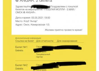 Продам 2 Билета на концерт Пошлая Молли который пройдёт 24 мая 2022 года. Продаю из за переноса концерта, не смогу прийти.