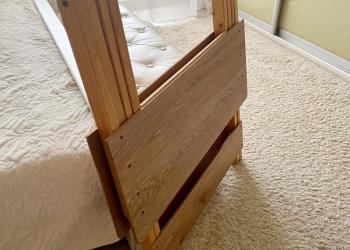 Кровать в хорошем состоянии, колёсики съёмные. Продаю вместе с матрасом, бортиками, и 3 пелёнками на резинке.